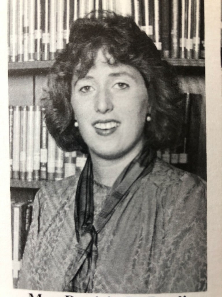 Algebra I was taught by Mrs. Bendis and she spoke very slowly. Slow enough to make you think that she was teaching a special needs class. Nothing was done quickly. Her class was relatively unremarkable from my recollections aside from when Brad Martin would occasionally mime sexual acts when her back was turned.
